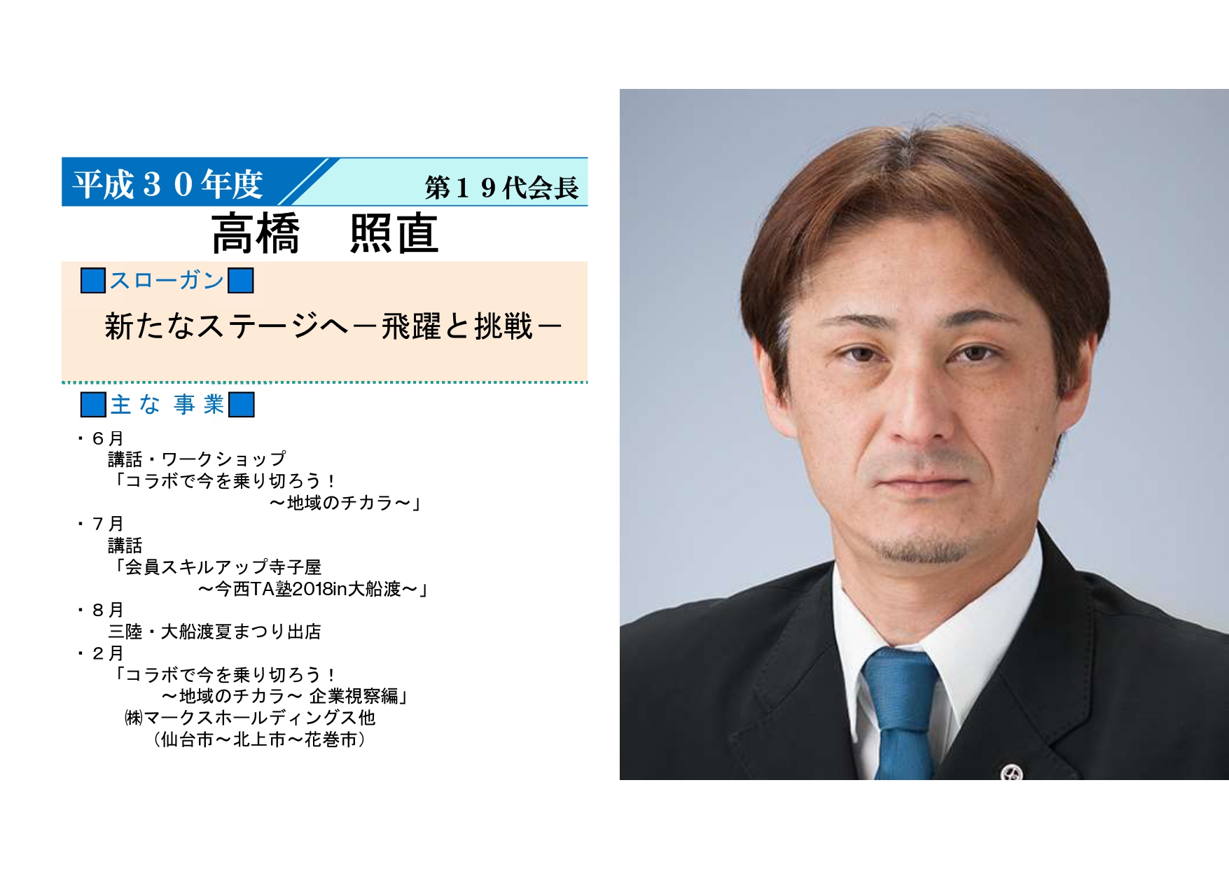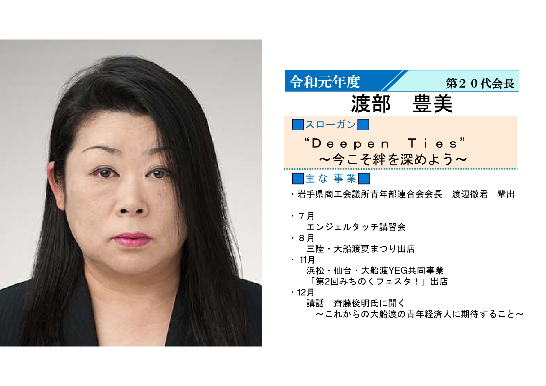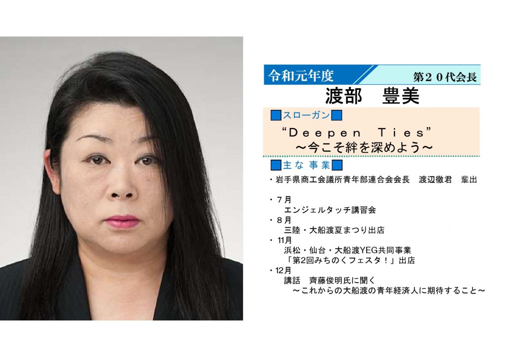 岩手県商工会議所青年部連合会会長 渡辺徹君 輩出
